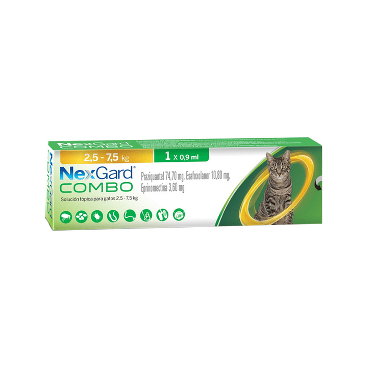 Nexgard Combo está indicado para gatos con infecciones mixtas por parásitos externos e internos, como pulgas, ácaros del oído, y gusanos intestinales, pulmonares y vesicales. Se administra de forma tópica, aplicando el contenido completo del aplicador sobre la piel del gato, preferentemente entre los omóplatos.